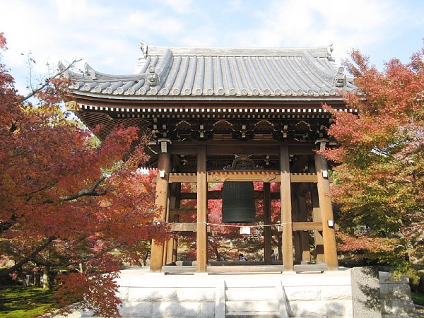 ここに紅葉に囲まれて鐘楼堂があります。